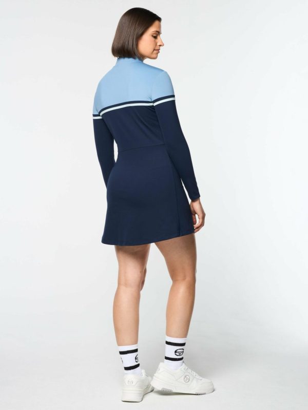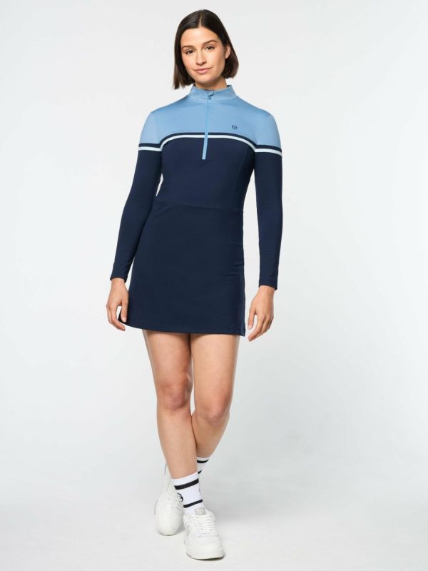 A tennis classic for contemporary times, our color-blocked Istrana Dress is crafted from buttery-soft 4-way stretch fabric that’s made to move with you through your workout to your everyday. Designed with a water-repellent aqua-guard zip placket at the front for easy venting, this fitted long sleeve dress includes supportive undershorts with ball & phone pockets for convenience on the court & beyond.