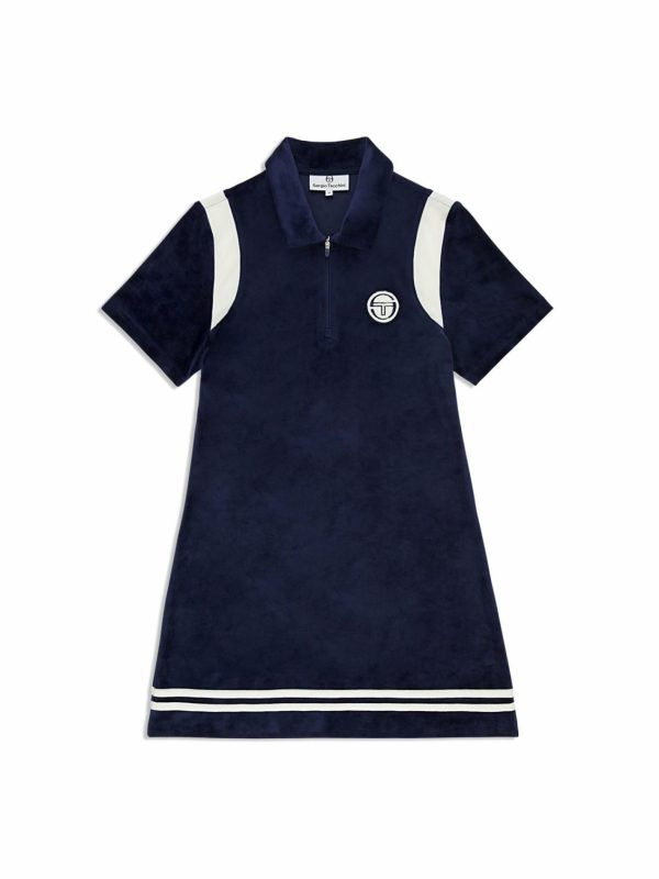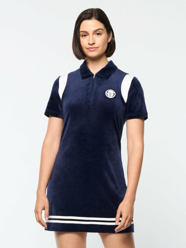 Sergio Tacchini Dresses | Women Veneto Velour Polo Mini Dress- Maritime Blue