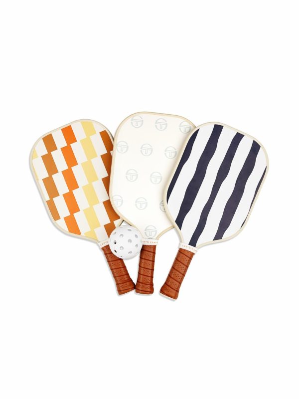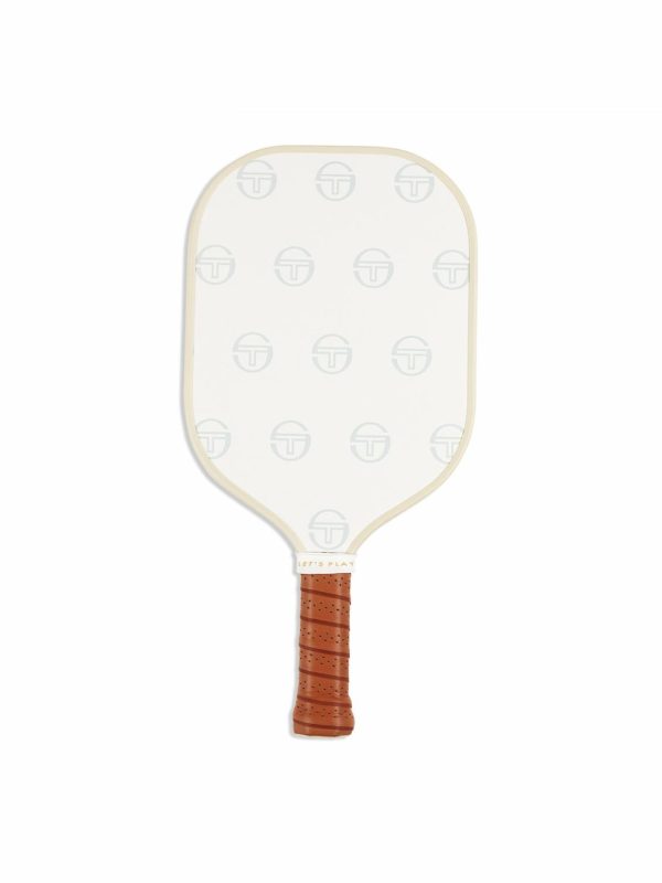 Hit the court in style with our performance ST Pickleball Paddle, made of durable fiberglass with a strong honeycomb core for power and control with a massive sweetspot. Perfect for a pickup game with friends, the paddle is complete with a comfortable sweatproof grip, custom Sergio Tacchini artwork at the face, and a protective canvas travel cover.
