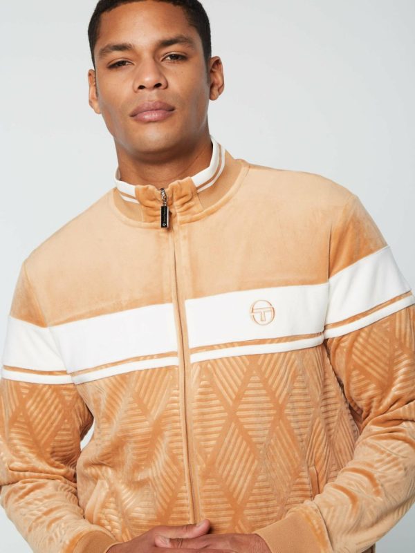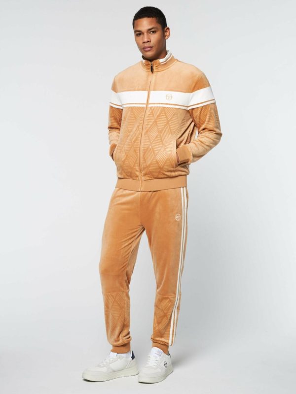The Debossed Damarindo Velour Track Jacket is crafted from plush velour with argyle debossing for a luxurious take on a Tacchini classic. Featuring our renowned double stripe at the chest, sleeves, and collar, this elevated full-zip track jacket is complete with spacious handwarmer pockets, rib-knit trims, and our iconic ‘ST’ monogram logo embroidered at the left chest.