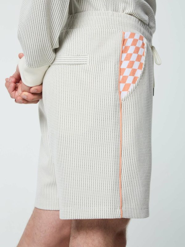 - Checkerboard print jersey detail at side hand pockets