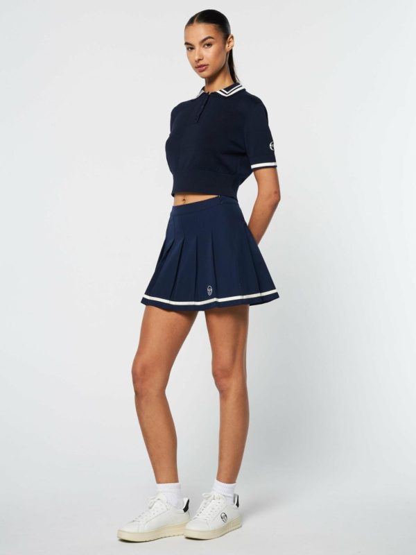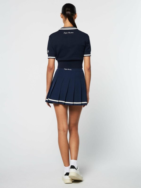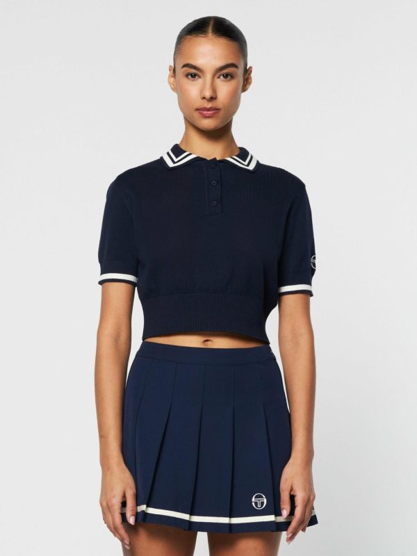 Crafted from premium cotton yarn that’s exceptionally soft to the touch, the Perla Knit Cropped Polo features breathable pointelle-knit panels at the front for an elevated look and feel. Designed with exquisite attention to detail, this luxe polo is finished with contrast embroidered logos and striping accents throughout.