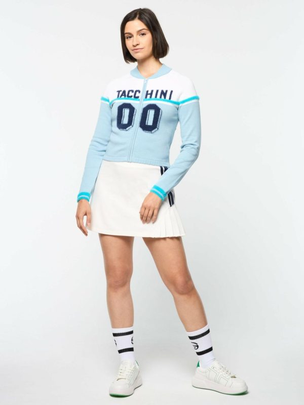 Designed with exquisite attention to detail, the Ruota Cycling Jersey is crafted from premium birds-eye knit fabric that’s lightweight, breathable, and exceptionally soft to the touch. Featuring custom Intarsia knit artwork and striping details in fuzzy yarn for a tactile finish, this color-blocked zip-up jersey is finished with classic cycling pockets at the back.