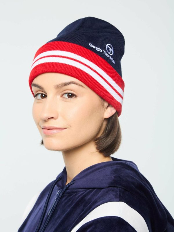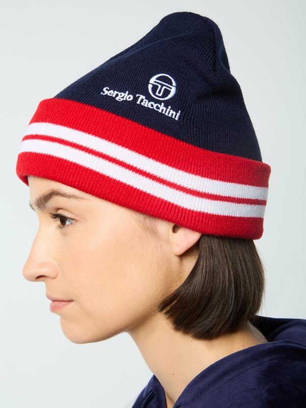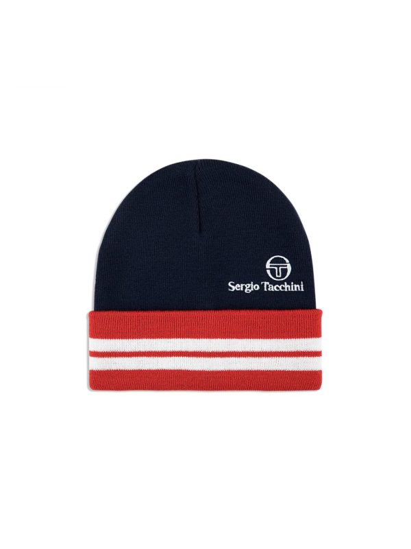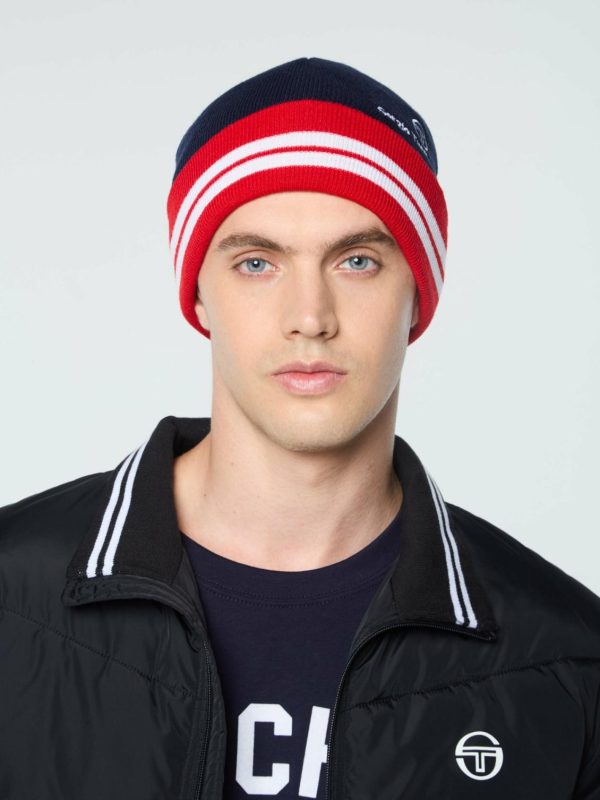 Perfect for when temps drop, the Surgis Knit Beanie is a classic fit fold-over watch cap featuring a contrast cuff with double stripe detailing. Complete with an embroidered Sergio Tacchini logo, this elevated beanie will keep you warm and stylish wherever you’re off to.