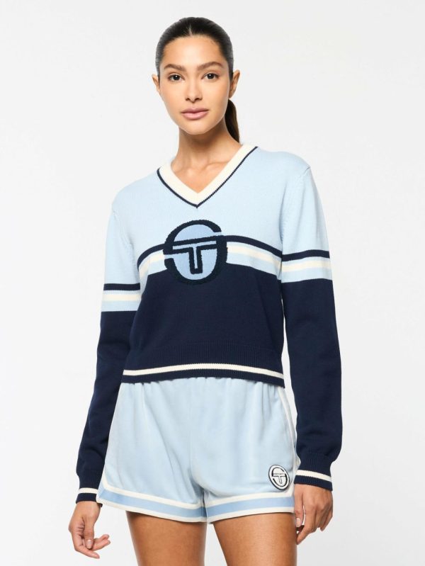 Crafted from premium high-twist cotton yarn, our color-blocked Veneto Sweater features a plush chenille ‘ST’ monogram logo over contrast striping at the chest for a playful twist on varsity athletics and cheerleader fashion. Designed with exquisite attention to detail, this luxurious sweater is part of our seasonal “New Ivy” capsule—a contemporary take on collegiate prep aesthetics.