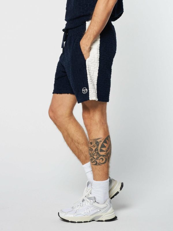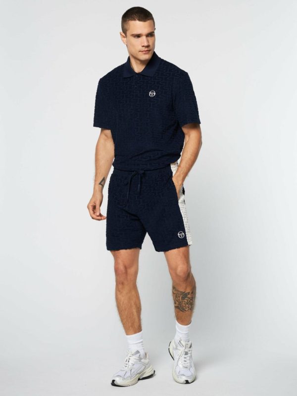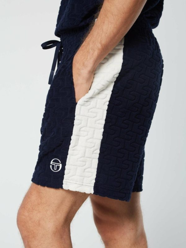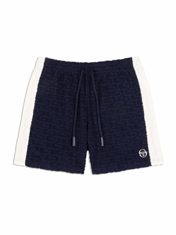 A nod to 1960s luxury resort wear, the Livata Monogram Short features our iconic ‘ST’ monogram in a debossed repeat over sporty terrycloth. Topped with a comfortable drawstring waistband, these premium shorts are complete with spacious pockets, color-blocked panels, and an embroidered logo at the hem.