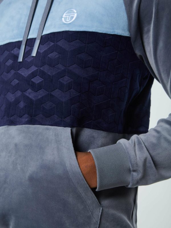 Elevate your everyday with the Foggia Velour Debossed Hoodie, crafted from super plush velour with a debossed geometric motif for a luxurious blend of style and comfort. Offered up in a color-blocked silhouette, this premium pullover is complete with a spacious kangaroo handwarmer pocket and an embroidered ‘ST’ monogram logo.