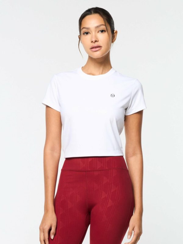 Crafted from buttery-soft, 4-way stretch fabric with moisture wicking properties, our Mirano Fitted Crop Top is the perfect fit for workouts and casual everyday wear. Featuring our iconic ‘ST’ monogram logo at the chest, this form-fit tee is cut cropped for easy styling over your favorite exercise shorts and leggings.
