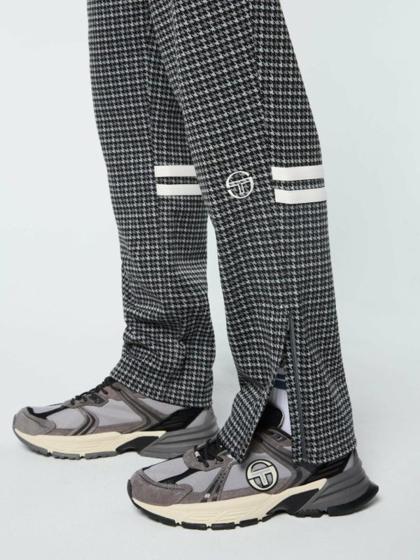 Keep it classy with the Dallas Houndstooth Track Pant, featuring an all-over houndstooth check pattern, taping stripes at the rear lower legs, and a custom woven label at the rear right zip pocket. An elevated spin on a Tacchini classic, the pants are finished with a comfortable drawstring waistband and adjustable ankle zips.
